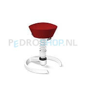 De gevormde zitting stimuleert een rechte zithouding. De zitting van de Aeris Swopper is van een gemêleerde wolmix. De kleur van de stoffering is rood.
