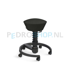 De gevormde zitting stimuleert een rechte zithouding. De zitting van de Aeris Swopper is van een gemêleerde wolmix. De kleur van de stoffering is zwart.