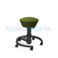 De gevormde zitting stimuleert een rechte zithouding. De zitting van de Aeris Swopper is van wolmix. De kleur van de stoffering is groen.