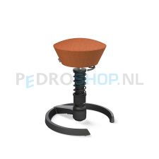 De gevormde zitting stimuleert een rechte zithouding. De zitting van de Aeris Swopper is van een gemêleerde wolmix. De kleur van de stoffering is oranjerood.