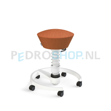 De gevormde zitting stimuleert een rechte zithouding. De zitting van de Aeris Swopper is van een gemêleerde wolmix. De kleur van de stoffering is oranjerood.