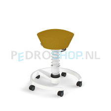 De gevormde zitting stimuleert een rechte zithouding. De zitting van de Aeris Swopper is van gerecycled polyester. De kleur van de stoffering is geel gemêleerd.