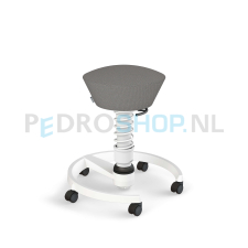 De gevormde zitting stimuleert een rechte zithouding. De zitting van de Aeris Swopper is van gerecycled polyester. De kleur van de stoffering is lichtgrijs gemêleerd.