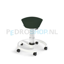De gevormde zitting stimuleert een rechte zithouding. De zitting van de Aeris Swopper is van gerecycled polyester. De kleur van de stoffering is groen gemêleerd.