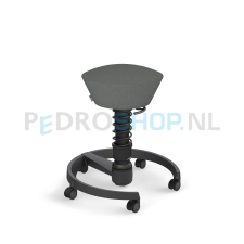 De gevormde zitting stimuleert een rechte zithouding. De zitting van de Aeris Swopper is van gerecycled polyester. De kleur van de stoffering is grijs gemêleerd.