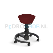 De gevormde zitting stimuleert een rechte zithouding. De zitting van de Aeris Swopper is van gerecycled polyester. De kleur van de stoffering is rood gemêleerd.