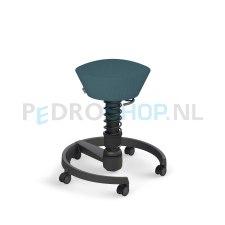 De gevormde zitting stimuleert een rechte zithouding. De zitting van de Aeris Swopper is van gerecycled polyester. De kleur van de stoffering is blauw gemêleerd.