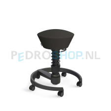 De gevormde zitting stimuleert een rechte zithouding. De zitting van deze Aeris Swopper kent een lederen hoes. Deze hoes is van hoge kwaliteit en geeft een stijlvolle look. De hoes is gemakkelijk te reinigen en is anti-statisch. De kleur van de stoffering is zwart.